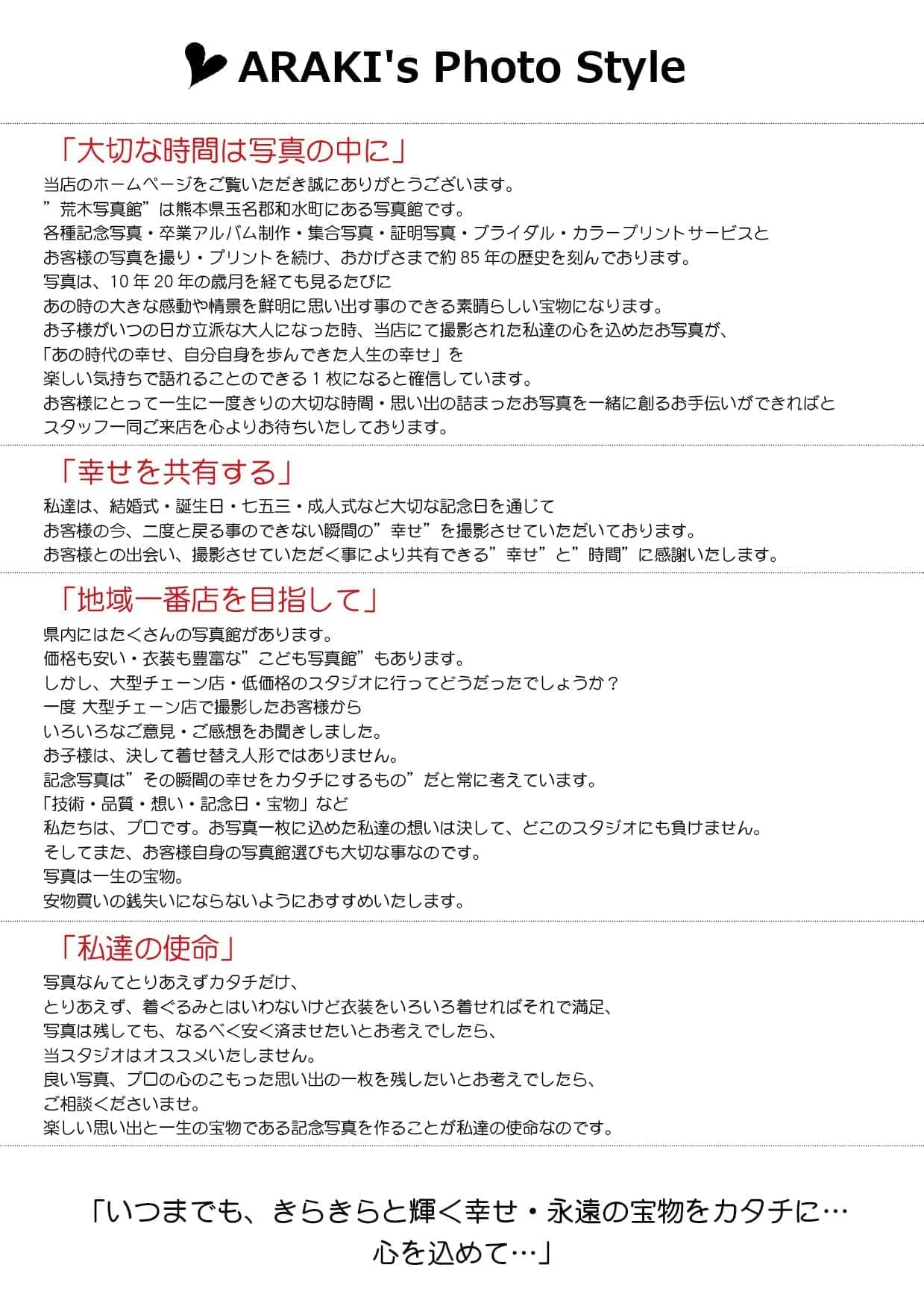 ARAKI's Photo Style 荒木写真館のこだわり
